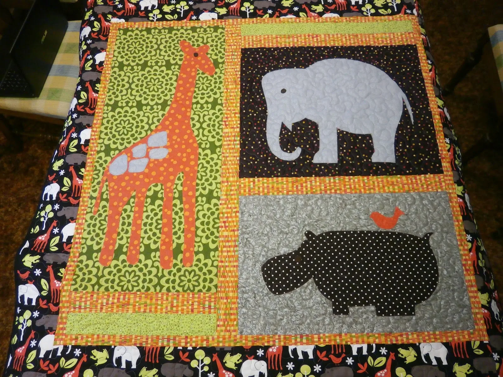Here is a close-up so you can see how all the animals are blanket stitched down. They were fused first with fusible web.