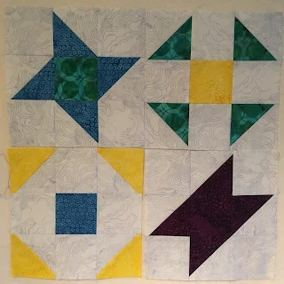 Next Monday we'll be learning a new unit - and I can't wait to see what we can make with it! Here are all four blocks that I featured this month. They all use Half-Square Triangles and plain blocks: