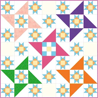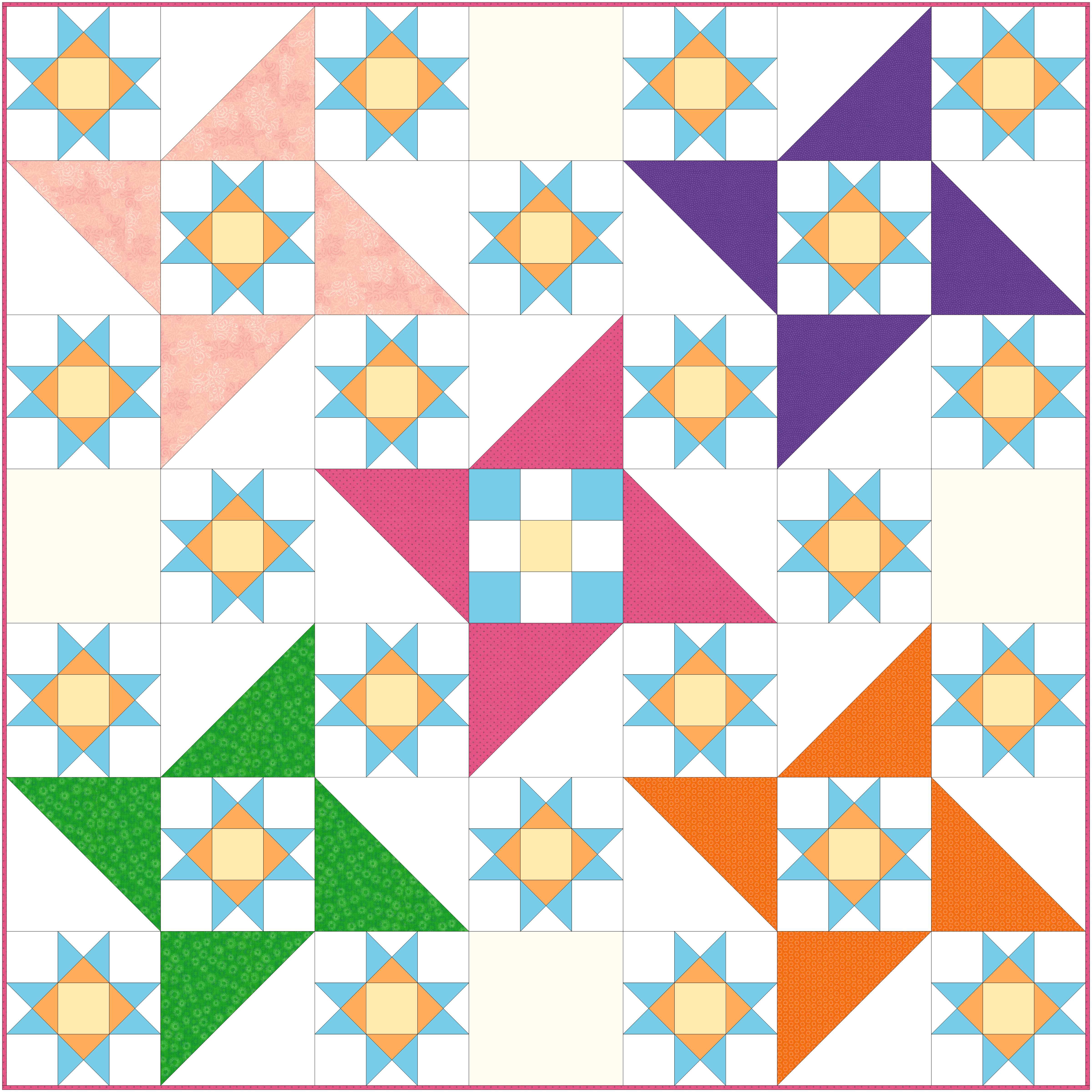I love how different this simple Shoo Fly block looks with a change in color! I was looking for my layout idea for my quilt but could not find the one I had in mind. So, I pulled up EQ8 and started playing around with some ideas. I ended up creating something I liked even better, plus it even kind of echos the official layout design.
